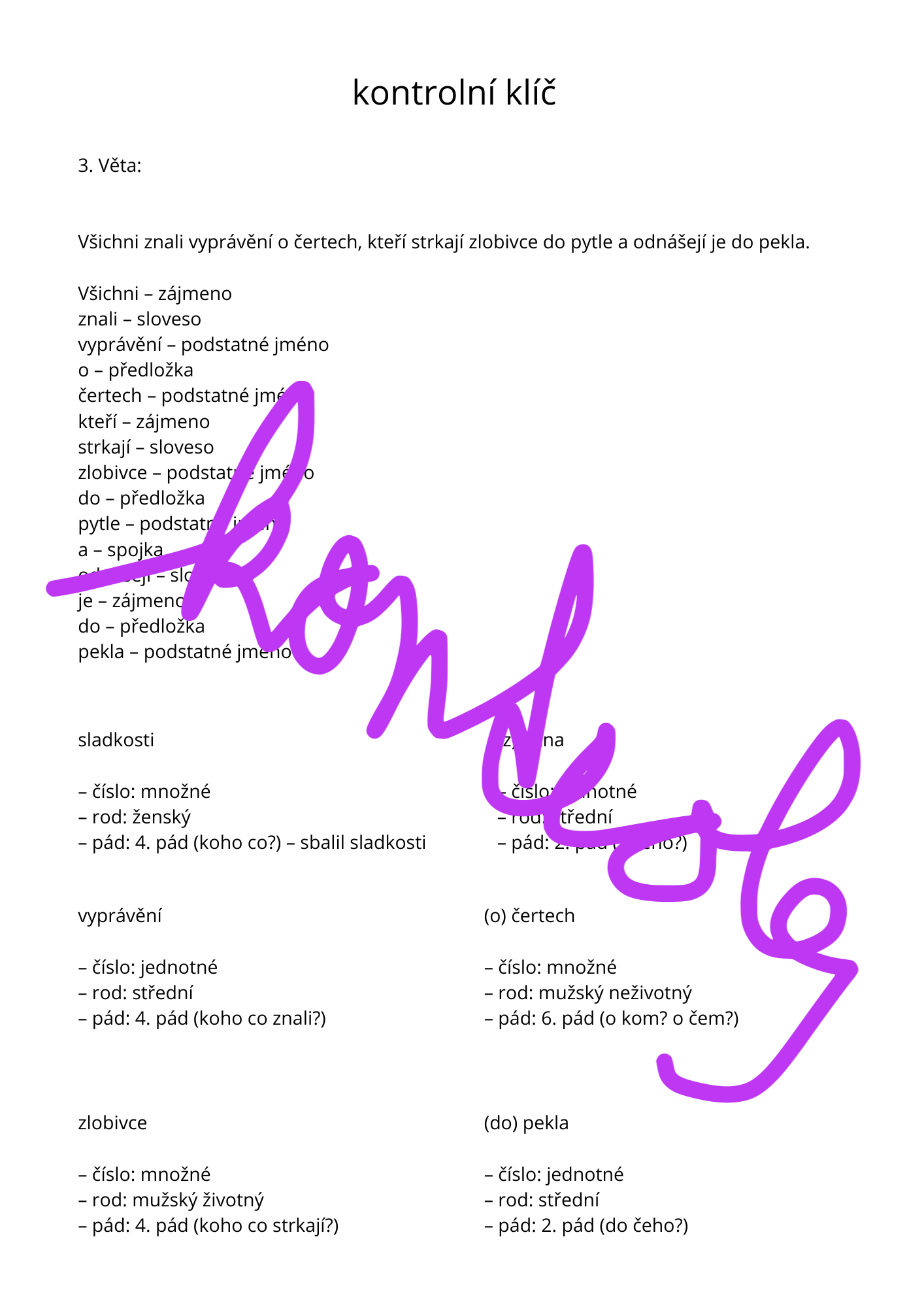 - Určení čísla, rodu a pádu vybraných podstatných jmen.