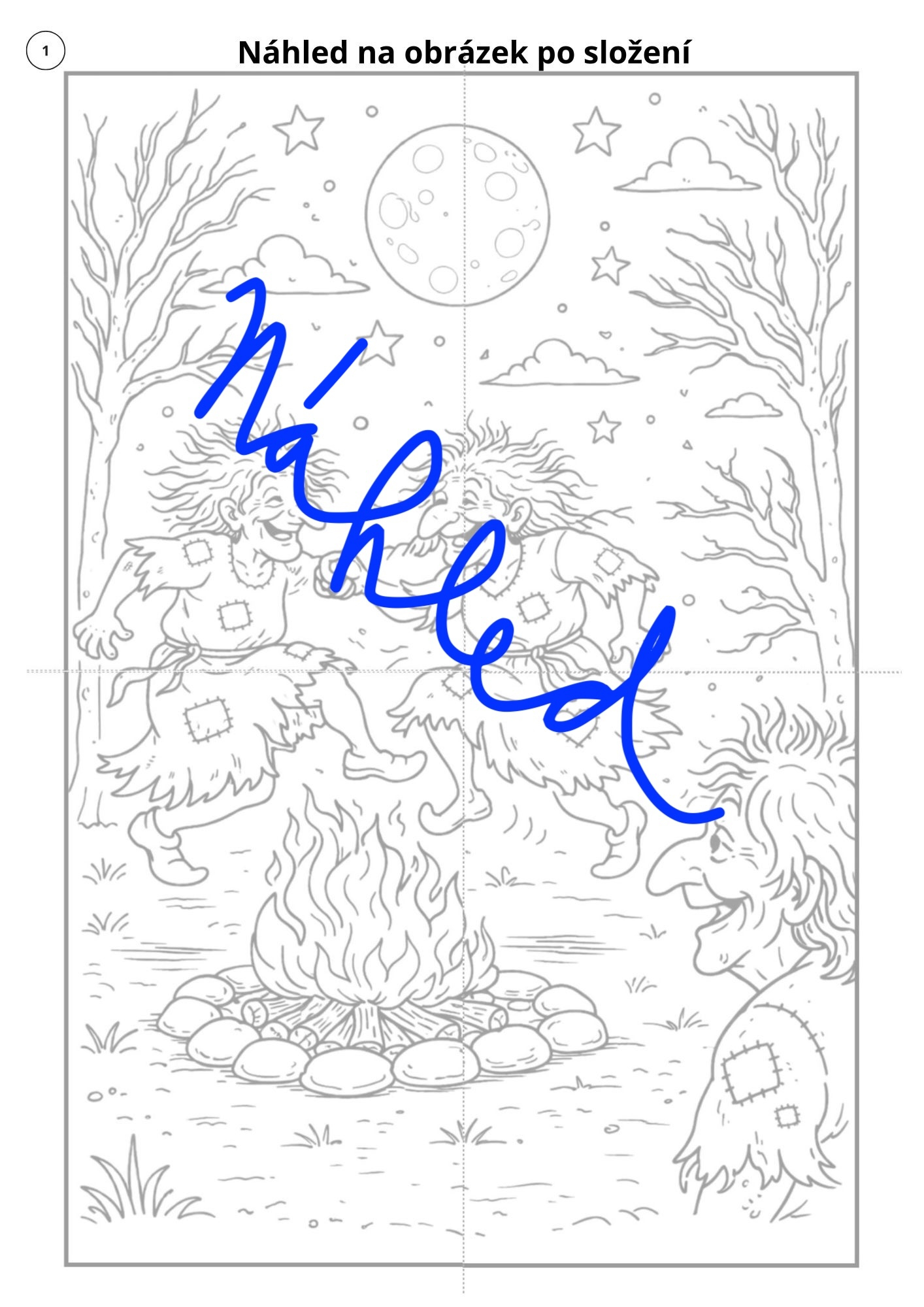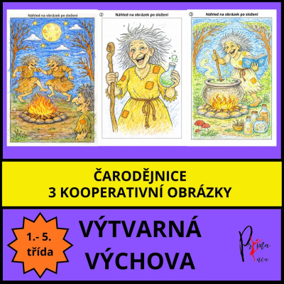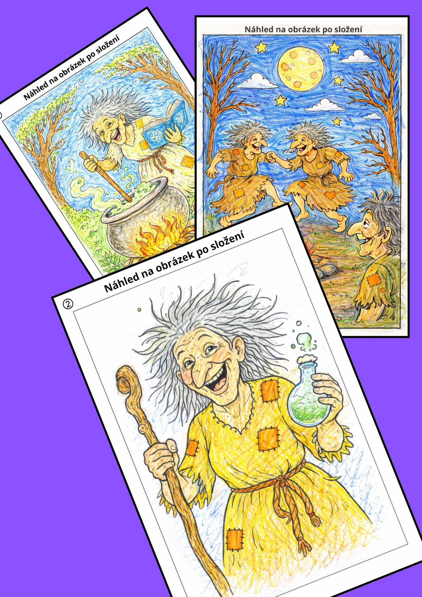 tento materiál obsahuje 3 kooperativní obrázky s tématem čarodějnic, které podporují spolupráci dětí. Každý obrázek je rozdělen na 4 části, které po spojení vytvoří jeden velký celek (viz náhledy ).