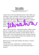 Materiál obsahuje kompletní přepis klasické pohádky Čert a Káča převedené do současného, dětem srozumitelného jazyka. Předlohu pečlivě zachovává – všechny dějové linie zůstávají přesné a beze změny. Součástí jsou také obrázky ve stejném ilustračním stylu, obrázková osnova, otázky ke čtení s porozuměním a krátká tvořivá úloha.