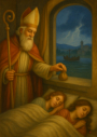 - Legendu o třech dcerách, kdy Mikuláš v noci pokládá měšec se zlatem za okno.