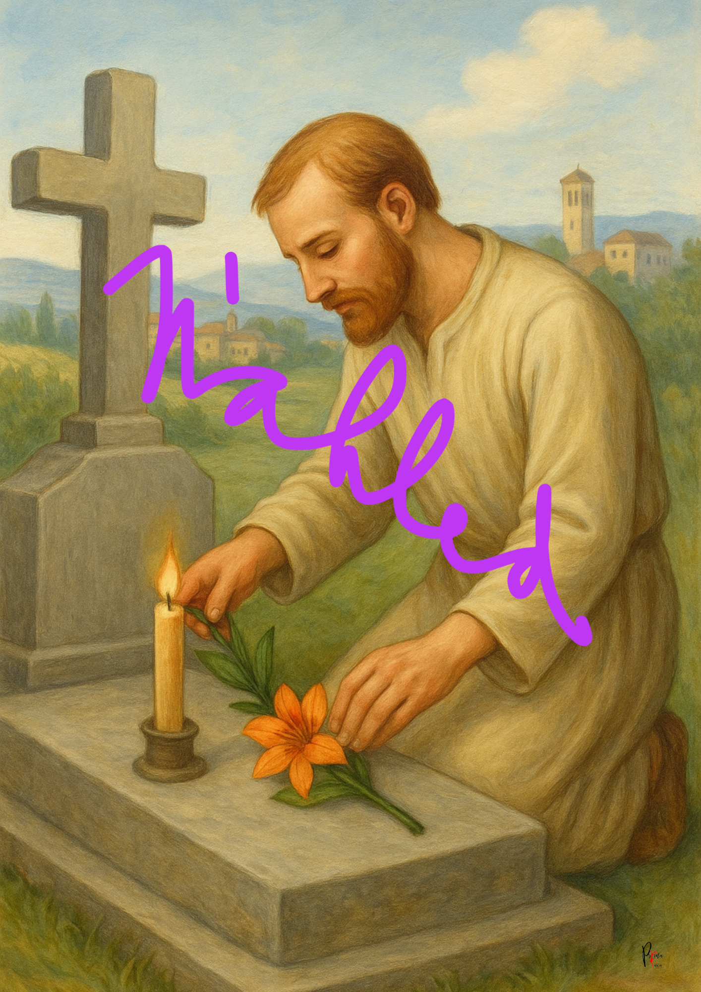 - Mikuláše u hrobu rodičů, kam přináší květinu a svíčku.