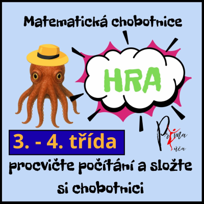 V materiálu je celkem 166 příkladů včetně klíče pro učitele a 16 zadávacích herních karet + 13 typů chobotnic