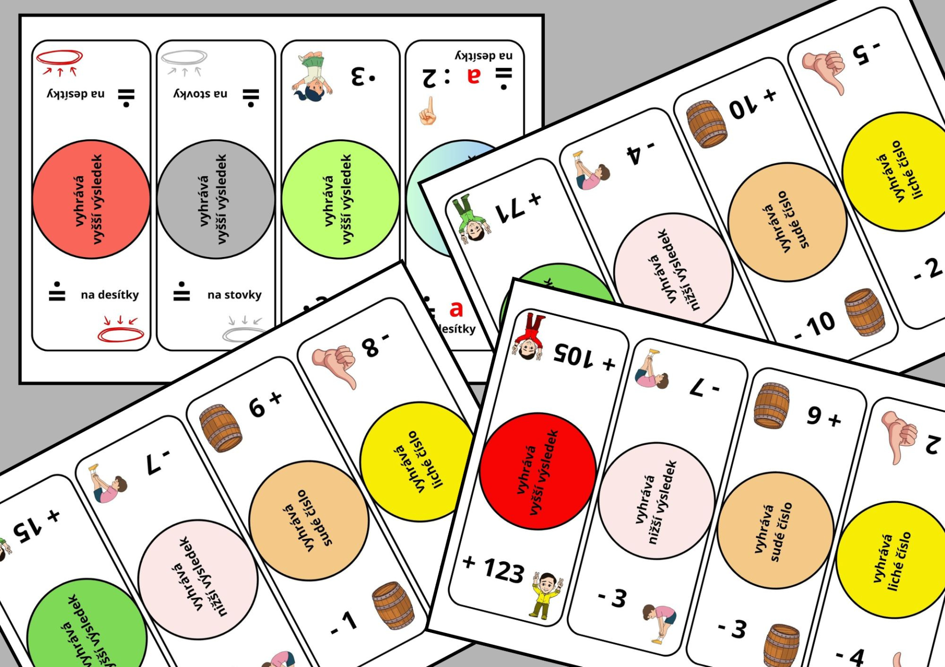 Kartu s pravidlem mohou děti používat pro více příkladů – například spočítají 10 příkladů a na konci kola porovnají, kdo nasbíral víc vítězných bodů podle dané instrukce.