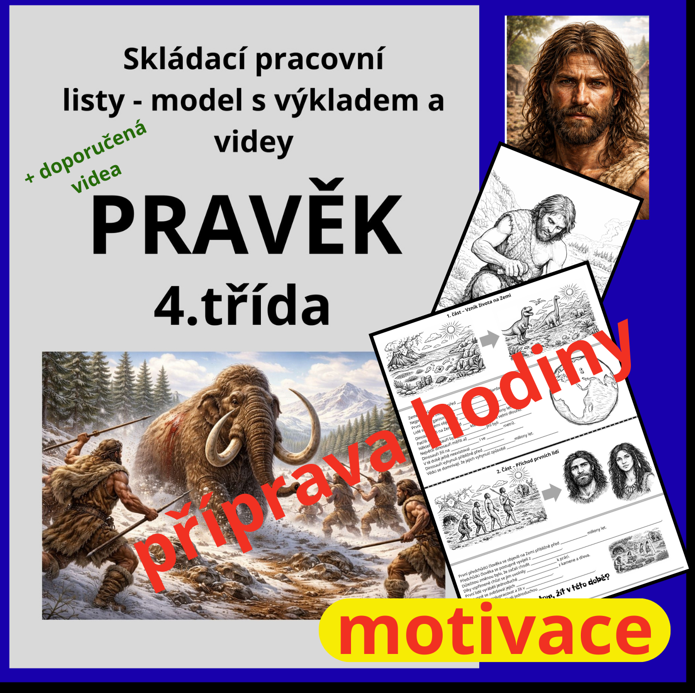 tento výukový materiál jsem vytvořila jako skládací pracovní listy ve formě jednoduchého modelu, kterým chci dětem přiblížit vznik života na Zemi, období pravěku a vývoj prvních lidí. Materiál je určen pro 4. ročník základní školy a slouží jako úvod témat vlastivědy – velmi dlouhým časovým obdobím, které by je ale mohlo velmi bavit.