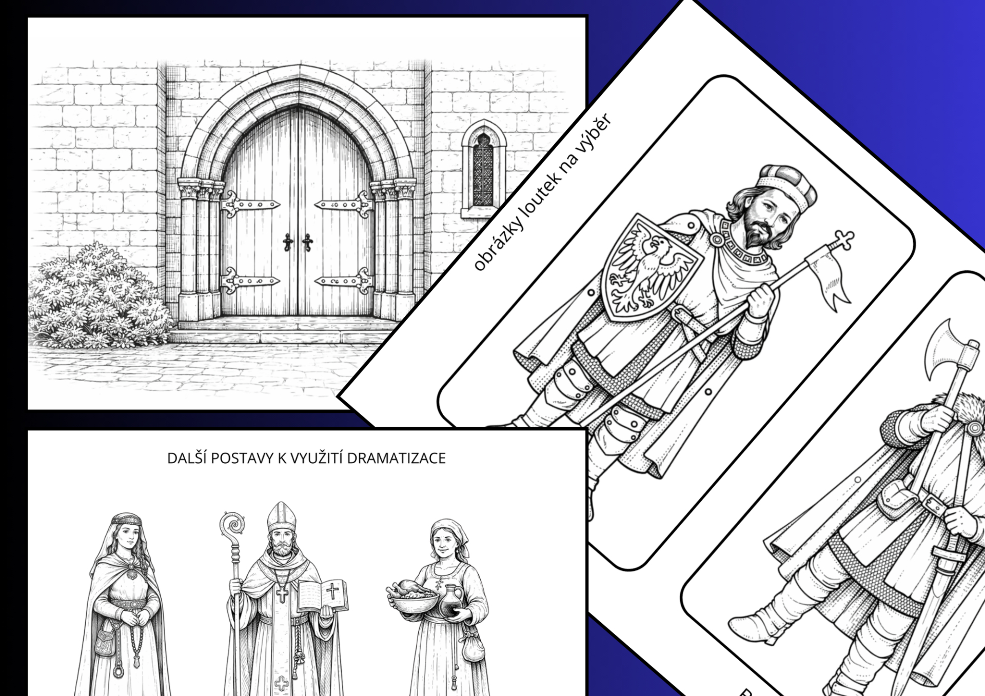 Výuka přirozeně přechází do výtvarné výchovy a pracovního vyučování. Děti si vybarvují připravené černobílé loutky historických postav, podlepují je čtvrtkou, vystřihují a lepí na špejle. Současně připravují kulisu kostelní brány a vytvářejí jednoduché loutkové divadlo například z krabice od bot. Při výtvarné práci se seznamují s podobou oděvu raného středověku a mohou navrhovat vlastní erby nebo kreslit mince – denáry. V pracovním vyučování si rozvíjejí jemnou motoriku, technickou zručnost a schopnost pracovat podle návodu. (POKUD NECHCETE VYRÁBĚT DIVADÉLKO, MŮŽETE OBRÁZKY VAUŽÍT I JINAK)