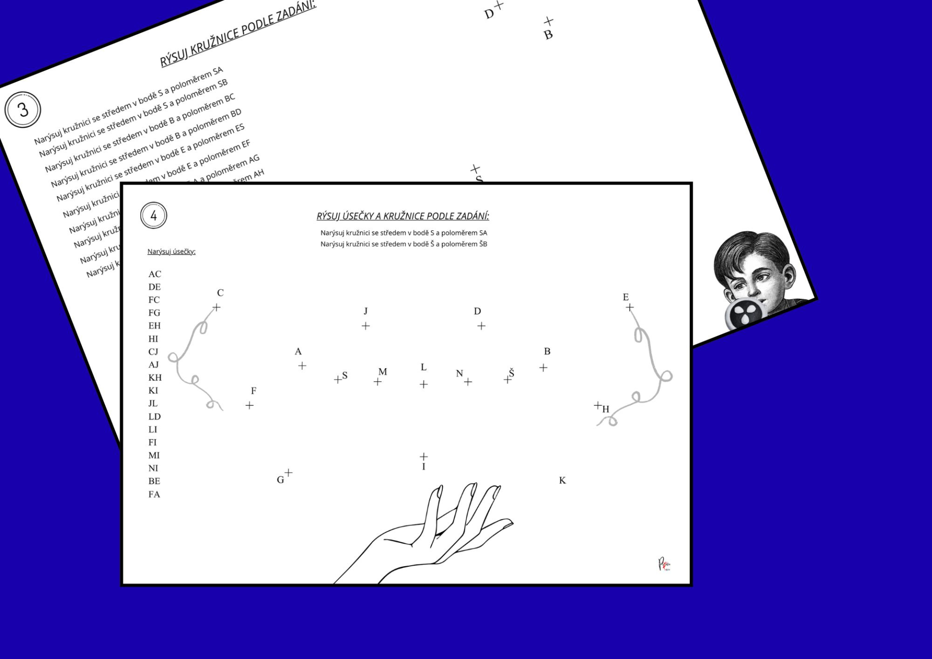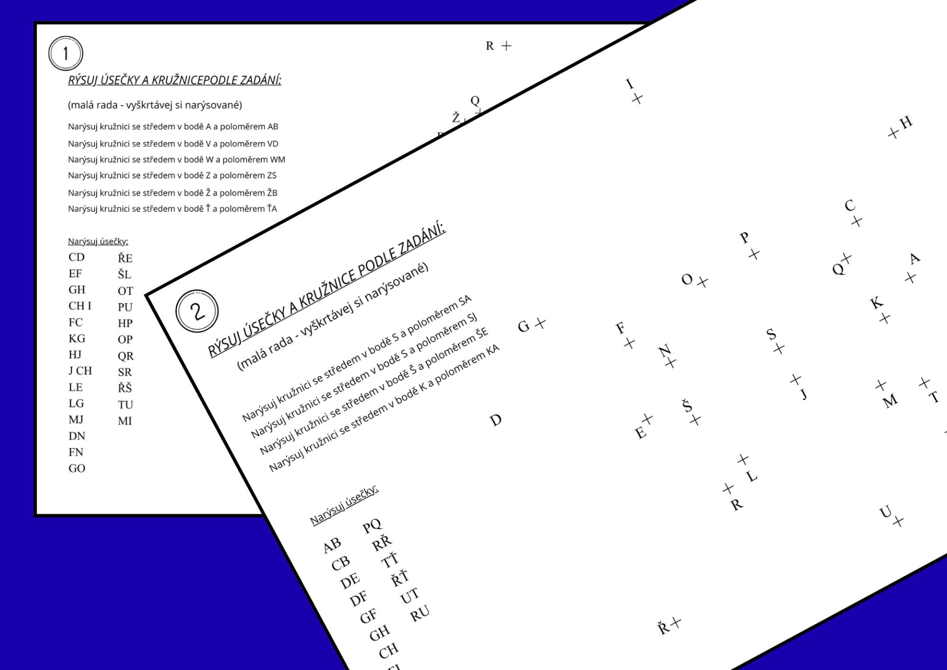 Tento pracovní list je určen pro žáky 2.–5. ročníku a slouží k procvičení geometrie, přesnosti práce s pravítkem a základů konstrukce. Žáci podle zadaných úseček rýsují obrysy MASOPUSTNÍCH OBRÁZŮ, které vznikají postupným spojováním bodů. V některých variantách je součástí i rýsování kružnic pomocí kružítka.
