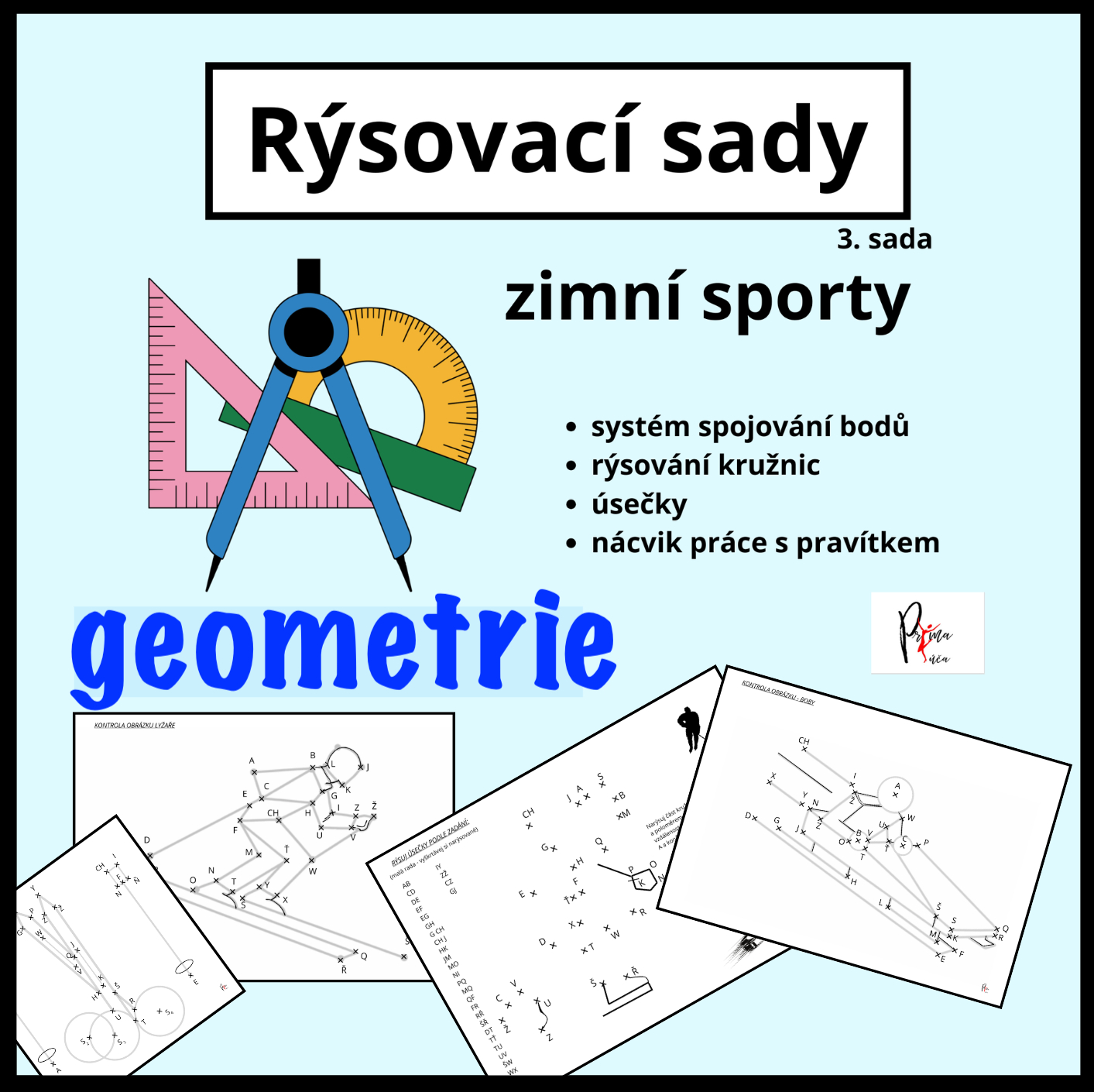 po velmi úspěšných rýsovacích sadách s tématem Mikuláše a Vánoc, které si děti ve škole opravdu oblíbily, jsem připravila další sadu, která je vhodná k využití po celou zimu. Výborně se hodí i jako doplněk k blížící se zimní sportovní soutěži.