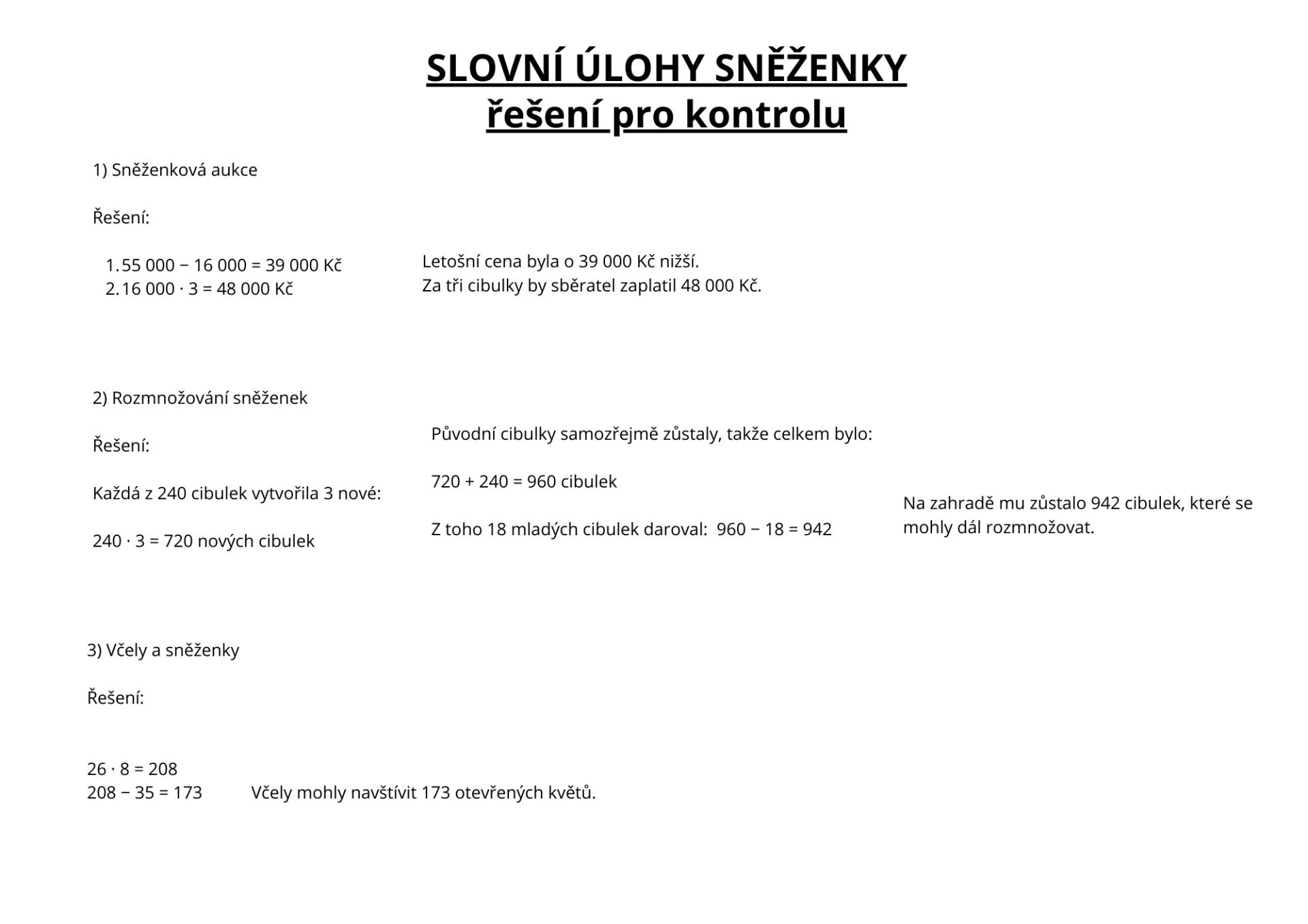 Důležitou součástí materiálu jsou také doprovodné fotografie skutečných bylin a slovní úlohy vycházející z reálných údajů. Tyto úlohy podporují rozvoj matematického myšlení, práce s čísly a porozumění textu. Zároveň přirozeně propojují matematiku s přírodovědou a vedou žáky k hlubšímu zájmu o živou přírodu.