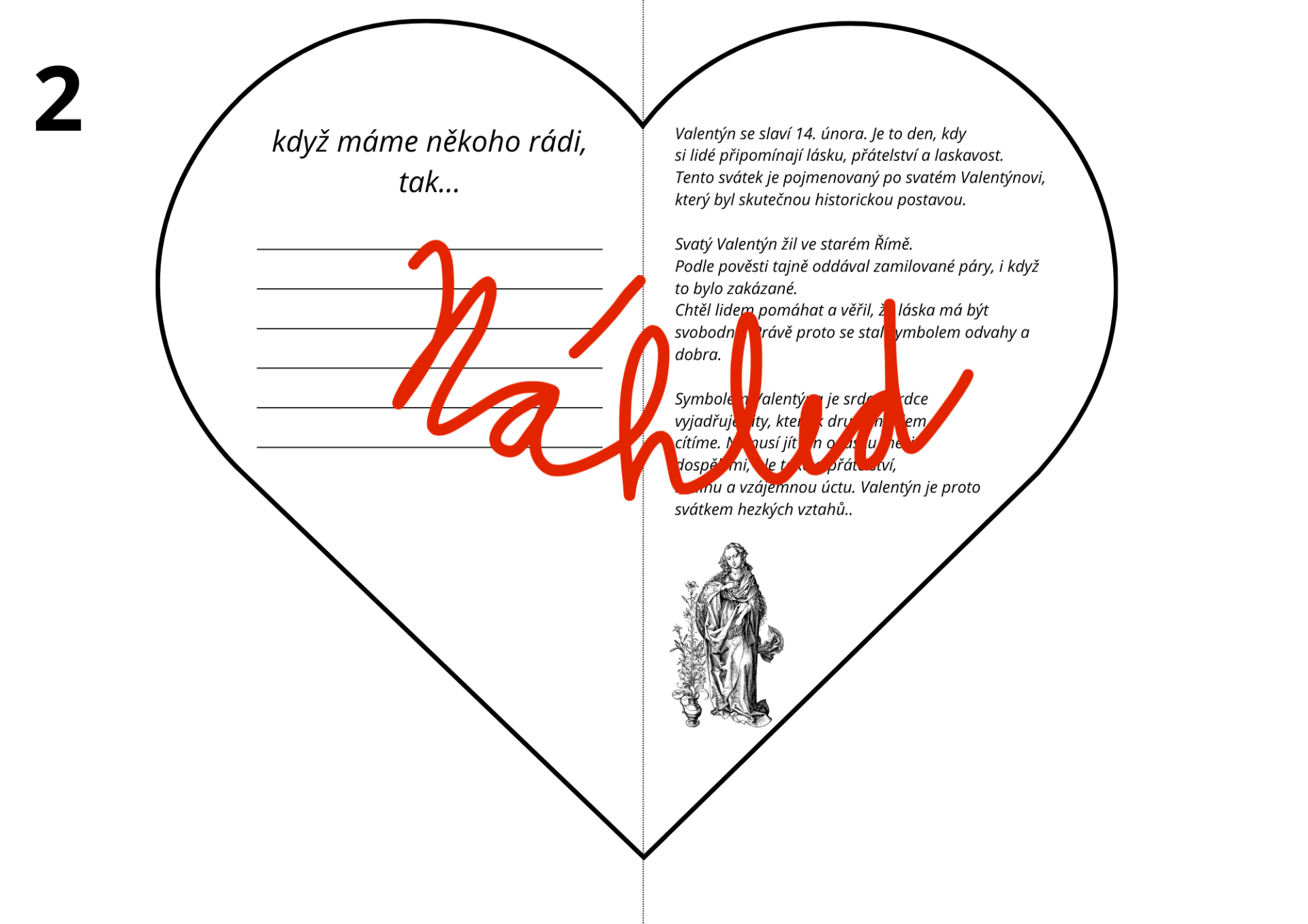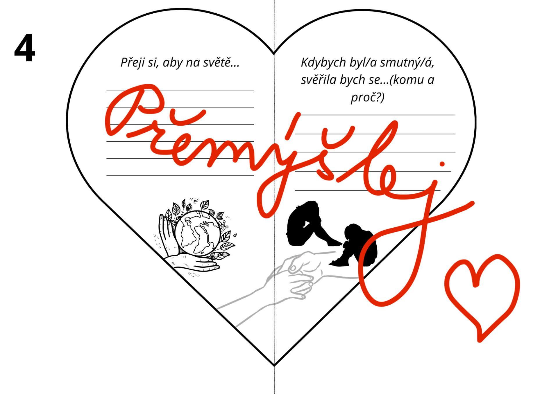 Materiál je zpracovaný formou pracovních listů ve tvaru srdce.